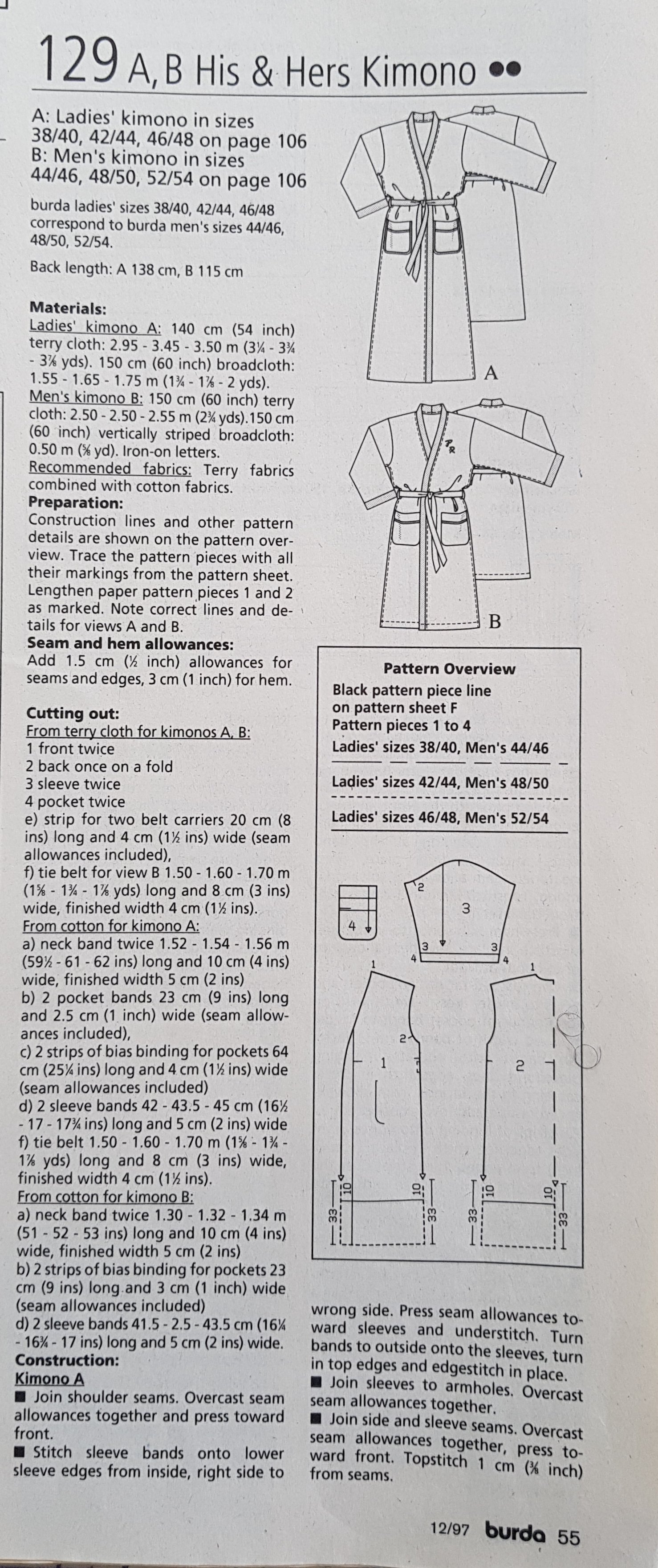 I was convinced I had never bought a pattern for a dressing gown before and I was about to search for one to buy when, while browsing through my old Burda magazines, I found this one.