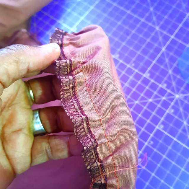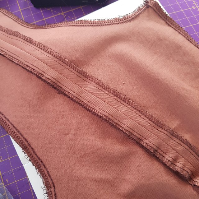 Then I moved on to the bodice, again finish the edges of all pieces. To save a little time I sew all the long seams in one continuous line before I piece them together so that’s the front and back princess seams and the long sleeve seams.