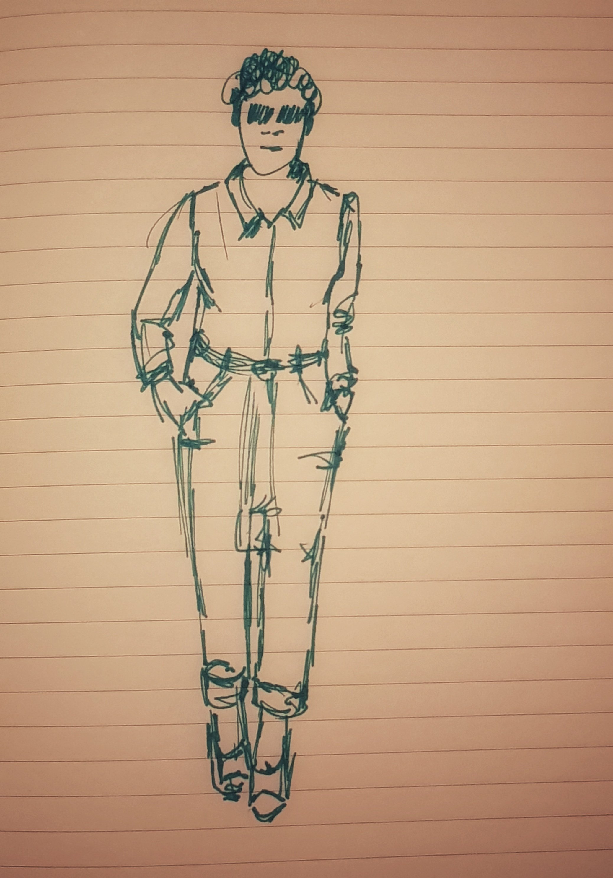The overalls were a combination of a princess seam bodice and tapered trousers from blocks I made while trying to learn to draft. I put together the two pieces and decided that I wanted a zipper in the front and slanted patch pockets. I wanted to topstitch to make the elements stand out and I wanted it fairly fitted. As it’s a woven fabric I’m going to overlock all the edges in case it frays.
