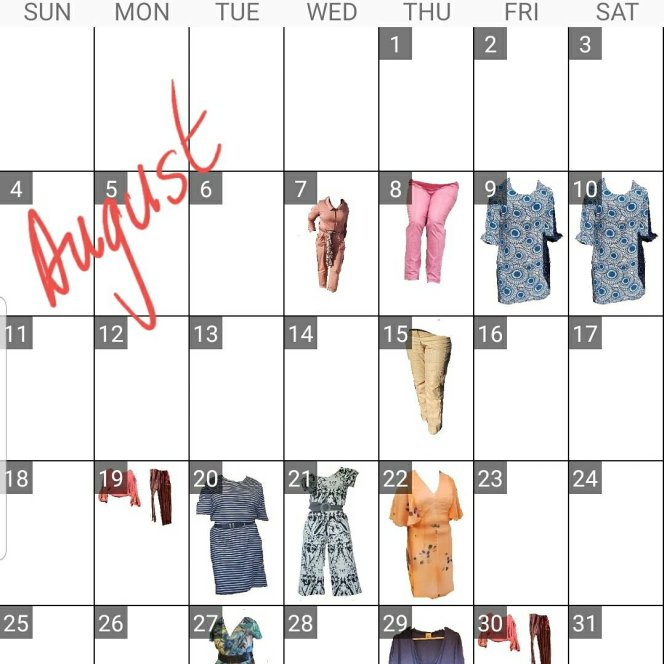 This was my summer self made wardrobe as far as I can remember. Gaps are either RTW (probably jeans and T shirt) or I can’t recall what I wore. That’s at least 33 out of 60 days on this trip. I’m going to try to use this app to see how I dress at home as well.