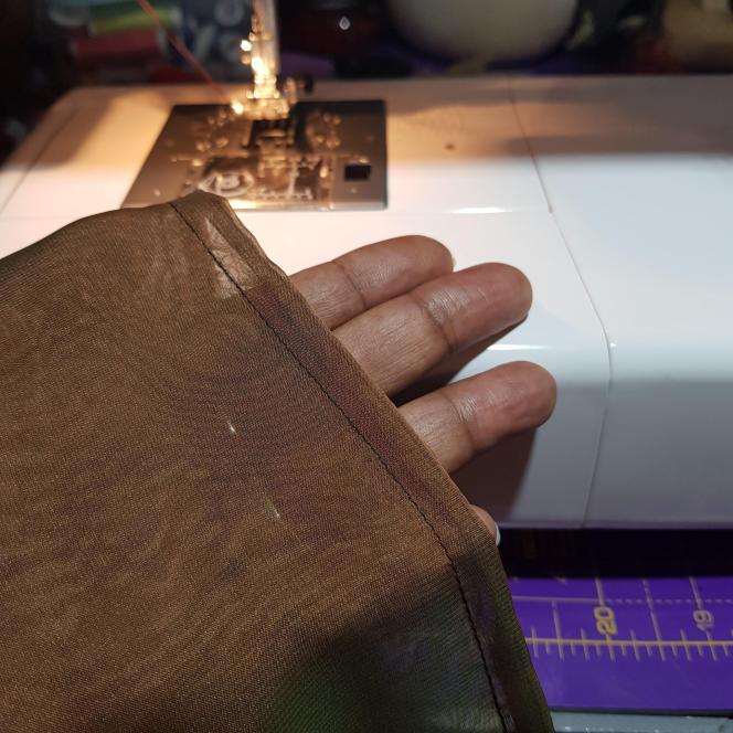 French seaming involves first sewing the seam with the wrong sides of the fabric together, yes the opposite of everything you’ve ever sewn before. Then you flip everything right sides together and sew a second seam which encases the raw edges. This double seam should be on the inside of your garment. It still needs to be finished well because it will show through the sheer garment.
