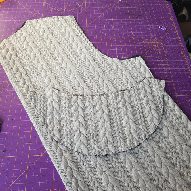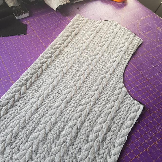 I’m using a piece of this thick textured jacquard knit with a cable pattern that I seem to be seeing everywhere in all sorts of colours and I’m quite a fan of. I chose this grey piece for Gary from @1stforfabrics. This proved to be a good choice for this pattern giving it sufficient body to make the collar stand up well.