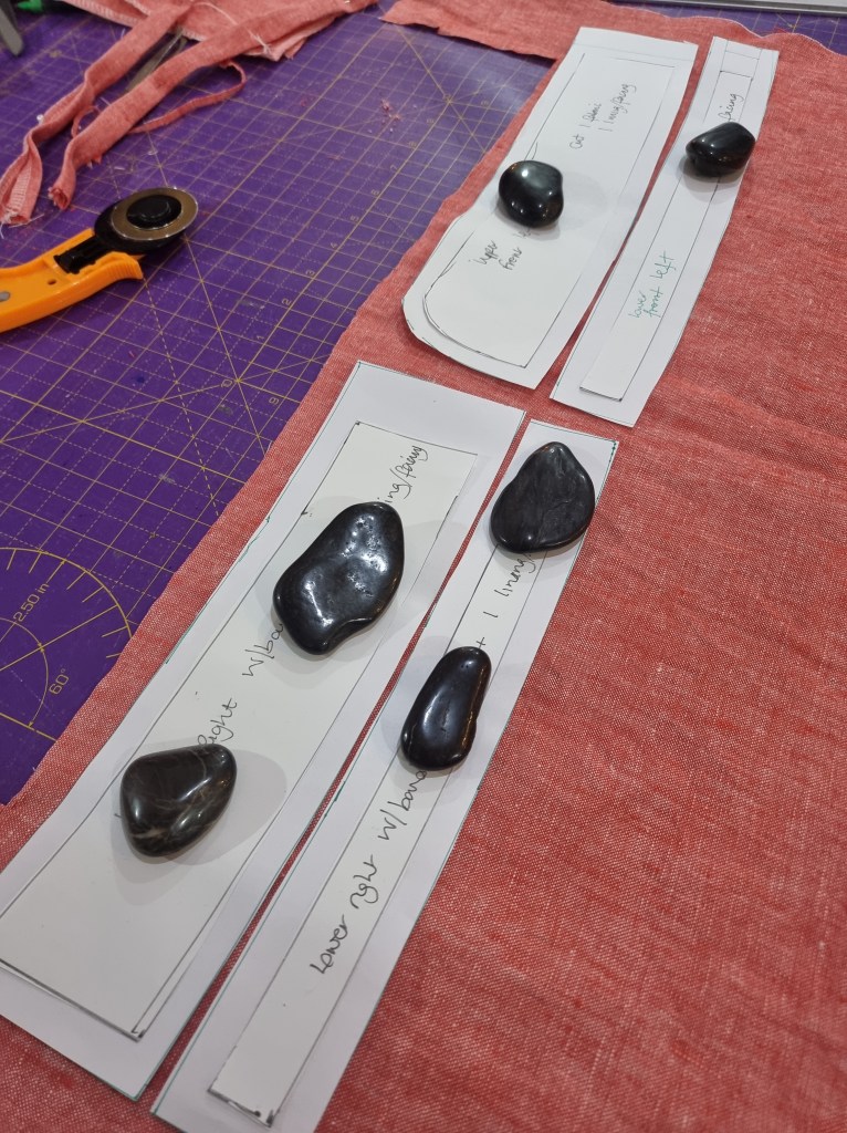 I used the rubbing-off method tracing around the waistband and using my awl to mark points on my tracing paper. I then added about 5 centimetres to the length of the waistband and a centimetre for seam allowance.