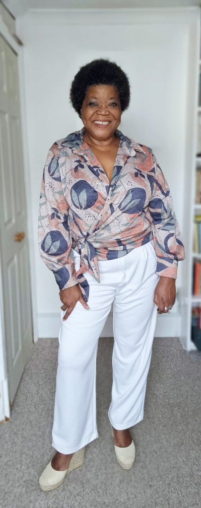 In the end, I made a triptych of garments. The first was another pair of Derwent Wide Leg trousers from @thatwendyward ‘s book “The Beginners Guide to Sewing with Knitted Fabric” These trousers fit me so well and I’ve made them 4 times now. It works with different weight fabrics from this quite lightweight knit to heavy Ponte di Roma.