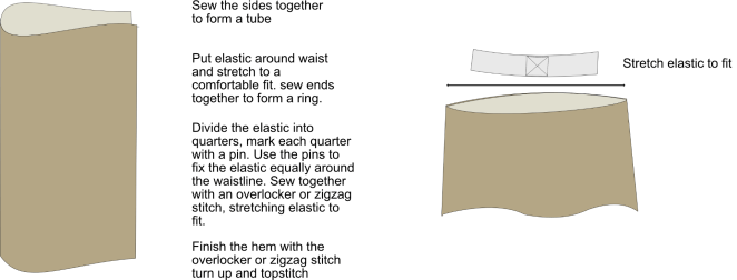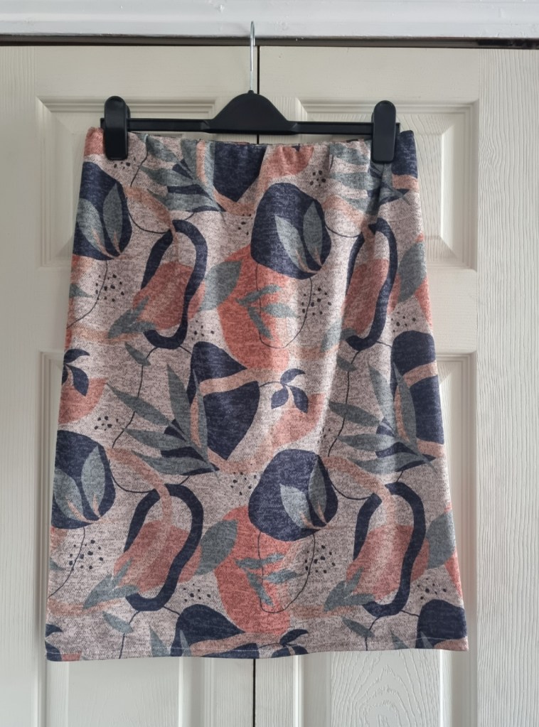 After these two first items, I still had enough fabric to make a simple tube skirt – I love the silhouette of a pencil skirt and these are so easy to make. To start, I measured my hips at the widest point and added 2cm. This is the width of fabric you need, the length is up to you. I used thick (5cm) elastic for the waistband and attached this to the edge of the waist with the overlocker then turned it over. You can secure this with a row of zigzag stitches if necessary. I finished the hem by overlocking, turning it up 2cm and topstitching, et voilá!