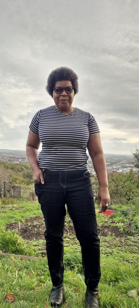 The denim is a lovely deep inky black and I decided to use white thread to give a great high-contrast topstitching. I didn’t have any white topstitching thread, so I used two spools threaded into the same needle to create a thicker line. I think it looks great and I hope that the denim won’t fade too much over time. PatternLab adds a little twist with this cutaway pocket detail which is quite nice. I got in on some of the hidden embellishments that I’ve admired on other makers’ jeans so they are #justasniceinside. I had some leftover pink denim from a failed project which I used to line the inside of the waistband. The pocket bags are made with some stretch cotton I found in the stash but can’t recall where it came from. The colours echo the pink of the waistband and although no one will see these details when worn, I’m glad I’ve included them. I finished the jeans with a silver stud button.