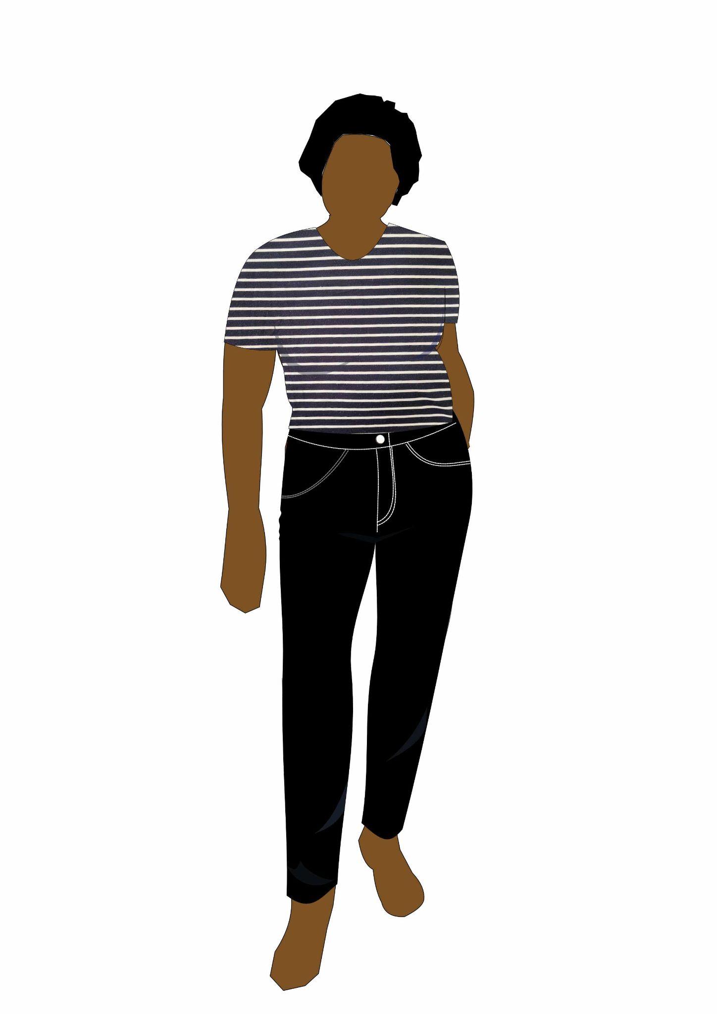 My latest jeans project uses the Pattern Lab system to hopefully get a good fit on these trousers. I’m using PatternLab.Ldn skinny jeans block with some black stretch denim from the stash. Here’s my Affinity Designer sketch for these classic-looking jeans.