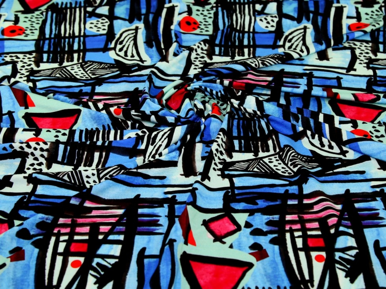 This project is all about the fabric. It was one of my Minerva projects, this time highlighting their viscose jersey in a really vibrant print called Babelone Art print. It really reminded me of 1950s and 60s abstract art and I love the blues and reds brought together with the graffiti-like black strokes.